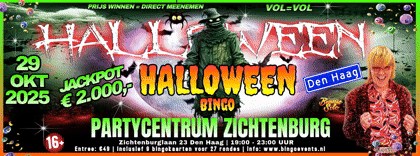 Speel mee met het grootste Halloween bingo-evenement van Den Haag. Op woensdagavond 29 oktober verandert Partycentrum Zichtenburg in een spookachtig bingo-paradijs, durf jij te komen?